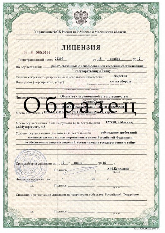 Заодно нужно помнить, что действие лицензии от ФСБ приостанавливается или вовсе аннулируется в случае нарушения одной из сторон условий действия договора, невыполнения лицензиатом предписаний или распоряжений государственных органов в соответствии с законодательством России или окончательной ликвидации предприятия. Если вам срочно требуется подобное одобрение, то единственным вариантом станет приобретение прав на фирму с уже готовой разрешительной документацией на застройку.