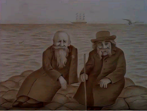 "Смех и горе у Бела моря" - это шедевр и памятник русскому северу и русскому языку. Мультфильм весь состоит из узоров: узор северной природы, северного сияния, северного языка, жизни северной артели. Дед Сеня - артельный человек, рассказчик, взятый в артель только для этой работы. Он рассказывает сказки, пока все работники не заснут. Сделан дед Сеня по состаренному образу Евгения Леонова, и его голосом же говорит.