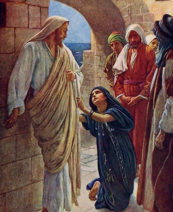 В седьмой главе Евангелия от Марка рассказывается об одной женщине, язычнице, которая пришла к Иисусу, чтобы умолять Его об исцелении ее дочери. О Нем услышала одна женщина, у которой дочь была одержима нечистым духом. Она тут же пришла и упала Ему в ноги. А женщина эта была язычница, сирийская финики́янка. Она стала просить Его изгнать беса из дочери. «Пусть сначала насытятся дети, — сказал ей Иисус. — Нехорошо отнять хлеб у детей и бросить собакам». «Да, Господин мой, — говорит она в ответ. — Но и собаки под столом едят крошки, которые роняют дети». «Раз ты так сказала, можешь идти домой: бес из твоей дочери вышел», — сказал Иисус. Женщина вернулась домой и увидела, что девочка здорова, лежит на постели, а бес из нее вышел. (Евангелие от Марка, глава 7, отрывки 25-30). Другими словами, эта женщина возразила Иисусу: "Да, Господь, но ведь и щенки едят от того стола, и я пришла получить свою еду". На мольбу женщины Иисус ответил иносказательно. И в этом иносказании Он дал ей одновременн