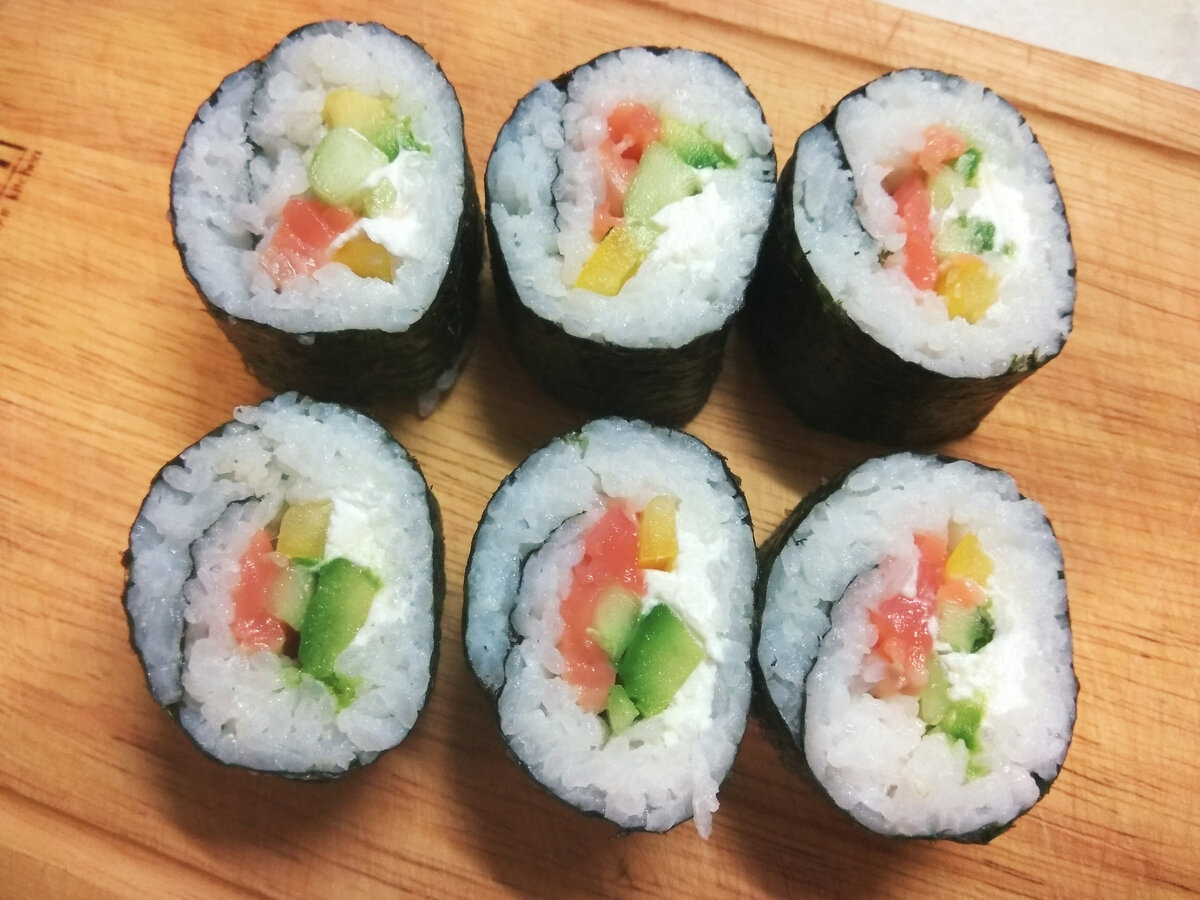 В этом году мы решили необычное для нас меню на Новый год, а почему бы не сделать СУШИ, вся семья их любит. Практика по накрутки суш есть, два года подряд в детском лагере каждую неделю был мастер -класс по приготовлению суш. Там-то я с дочкой набила руку, в основном делали роллы. Но мы их называем суши... вкуснятина. Что нам нужно, водоросли в Москве мы покупаем этом марки SEN SOY Соевый соус, васаби этой марки, именно это просто ядреная. Мне больше нравится порошковая. Имбирь продается готовый , маринованный в баночках и в пакетах с разным весом Рис круглозерновой, на два пакета нори(их по 5 листов) хватает 600гр риса, варится до состояния когда рис крупинкой не чувствуешь но не переварить в однородную кашу. Именно этот рис идеальный как для каши рисовой и суш, покупаю на развес. Рис не солю, т.к творожный сыр(филадельфия) солененький немного+макаем роллы в соус. Это по нашему вкусу В теплый рис добавляю уксус яблочный, если есть рисовый уксус отлично подойдет. На 600 гр