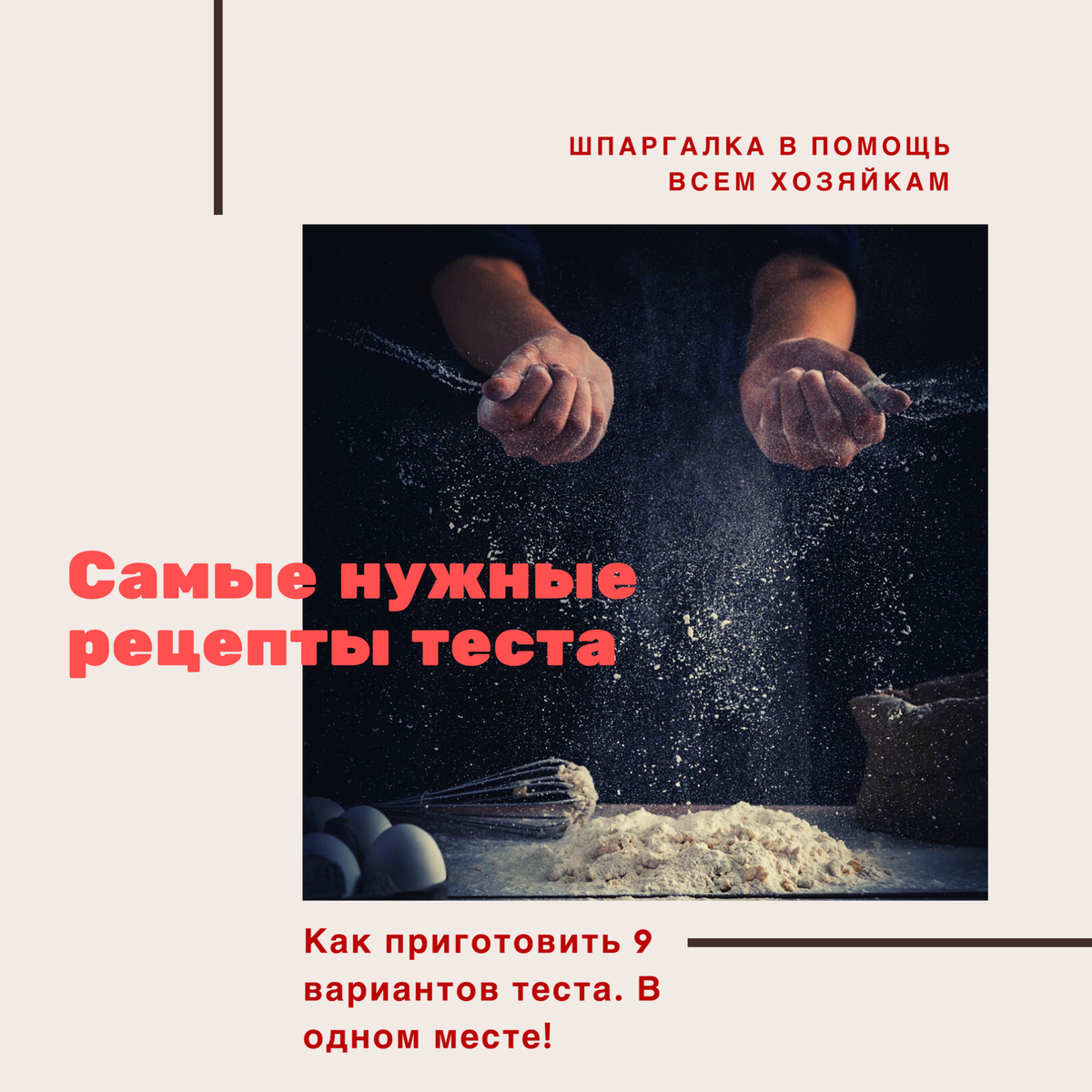 Я знаю, как, порой, сложно найти рецепт хорошего теста, проверенный годами и не одними руками. Именно поэтому я решила собрать все имеющиеся знания по этому продукту в одну большую подборку. Уверена, вам это очень пригодится! Сохраняйте и используйте, друзья мои!🤗 P.S. В этом списке не хватает идеального теста на пиццу. Потому что я его ещё не нашла... Если вы мне поможете, скажу вам воооооот такое спасибо 🤗 Пишите в комментариях свои рецепты👍 ПЕЛЬМЕНИ Вариант 1. Смешиваем 200 мл воды, 1 яйцо, 2 ст. ложки растительного масла, щепотку соли, муки - до нужной тугой консистенции. Вариант 2. Смешиваем 120 мл воды, 1 яйцо, 7 гр соли, 320 гр муки. Оба варианта: пропорции умножаем на столько, сколько нужно получить теста. После вымешивания убираем в пакет и отправляем в холодильник на несколько часов отдохнуть. ПИРОГИ И ПИРОЖКИ Наливаем в сотейник 250 мл молока, всыпаем 11 гр сухих дрожжей (стандартная маленькая упаковка), добавляем 63 гр сливочного масла и сахара - от 100 до 140 гр, в