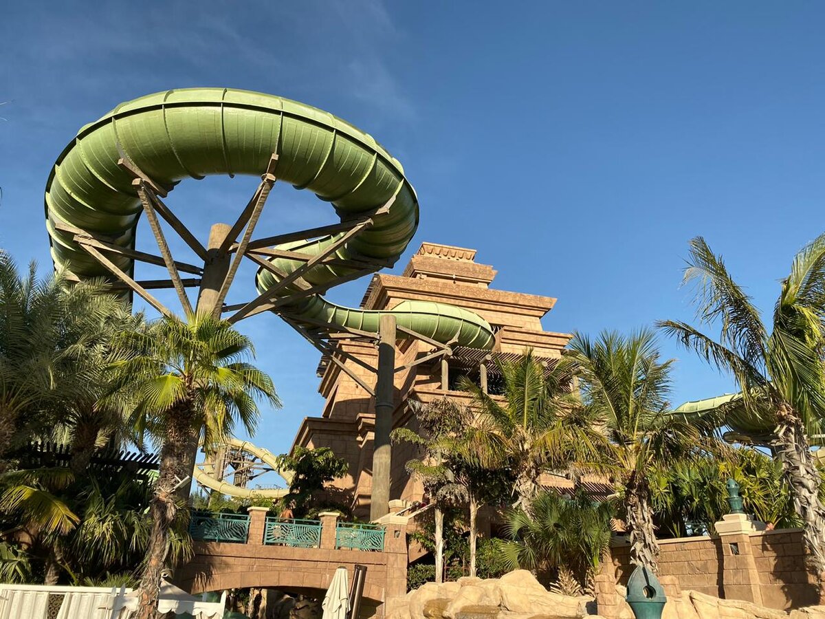 Предновогодний отпуск я с семьёй провел в Дубае. И решили мы отправиться в аквапарк Atlantis. Посмотрели отзывы на Гугл.Картах, вроде все ок. Сразу отмечу, что были мы в будний день, а значит местных было по минимуму. Практически в каждой стране, в которой мы отдыхаем, мы посещаем аквапарк. И с такими очередями не сталкивались нигде. Заранее купив билет (один билет - больше 5000 рублей, это очень дорого) в отеле мы должны были не стоять в очереди на вход. В результате очередь была на 25 минут. За аренду полотенца нужно дополнительно заплатить около 800 рублей. За аренду, а не покупку! Цены на еду соответствующие. Шкафчик - 1000 рублей. Всего в аквапарке примерно 12-15 взрослых горок. При этом, чтобы взять плюшку для катания и дойти до очереди на горку, нужно минут 10. Все специально так растянуто, чтобы сократить очереди. Не получилось! Ни с одной горки нельзя скатиться не отстояв минимум 20 минут в очереди. Жена пошла на их фирменную горку (она проезжает через аквариум). Простояла в