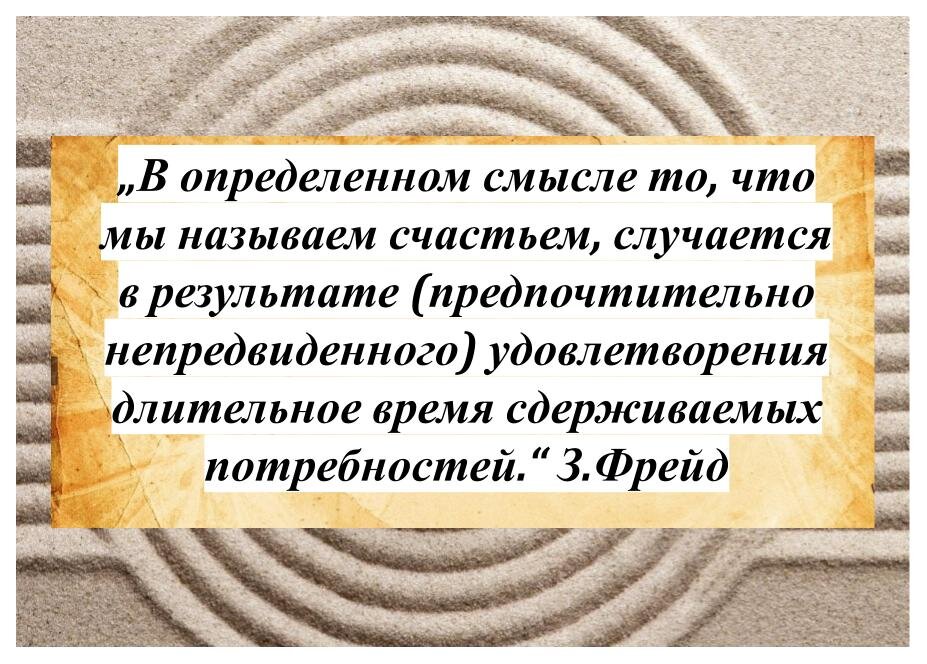 Для тех кому за 50 и тех, кто устал искать своего человека. Поиски к личному счастью не привели. У каждого на это свои причины. Поиск этих причин привели меня к потребности почитать основоположников. Зигмунда, и я не побоюсь этого слова, Фрейда. Если ищешь личное счастье, то надо понять что это такое. Что именно надо найти: Цитата По Фрейду: Потребность быть счастливым будет жить с человеком пока он жив. Счастье в одиночку это побег. Я пробовал. Покоя много, счастья - не очень. Возраст хитрая штука, накладывает свои правила игры. После 50 лет сложно вступать в отношения. Поиски "своего" человека не принесли успеха. Почему это так? Могу сказать только свою историю и свои мысли на этот счет. У меня сейчас такой этап самоосознания: я одинок и устал искать свою женщину.. Хочу чтобы сама меня нашла.. Правда есть опасения, что моя женщина тоже поняла то, что у нее сбит прицел в отношении мужчин и сама сидит и ждет меня. Лично у меня такие мысли. Мне знакомая психологиня сказала, что это норм
