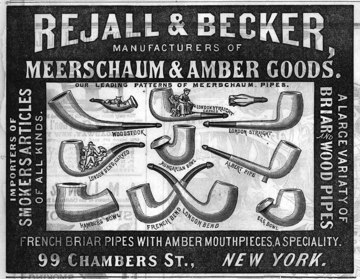 Однако автор оригинальной статьи ссылается на более ранние труды, до 1850-х годов, некоего Г.М. Рауфера издавшего такие трактаты как "The Fabrication of Meerschaum and Amber Wares" и "Preparation of Wooden Pipe Heads". Материал вдвойне интересен тем, что в рунете информации о истории использования материалов кроме меершаума и бриара практически нет.