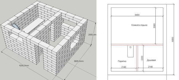Выбор проекта бани из шлакоблока зависит от размеров бани, которая планируется в будущем: Дачная баня имеет стандартную площадь 5*5 метров и состоит из трех помещений – предбанника, парной и душевой. Для минусовых температур необходимо предусмотреть электрокамин для обогрева предбанника. В зиму каменка не справится с отоплением всего помещения. Для удешевления строительства утепление производится снаружи. Фундамент Поскольку конструкции из шлакоблока обладают небольшим весом, для них не требуется мощный фундамент. Плотные каменно-песчаные субстраты предполагают монтаж шлакоблоков без предварительной укладки фундамента. Если же закладка основания планируется, то она выполняется по таким правилам: Стены Стены бани из шлакоблока возводятся по аналогии со стенами кирпичной постройки: Отделка снаружи и внутри От качества отделки зависит качество работы бани. При проведении работ нужно придерживаться нескольких рекомендаций: Печь в баню можно покупать любого типа. Оптимальным вариантом дл