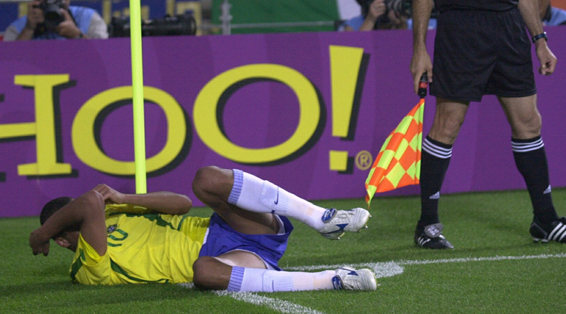 Легендарный бразилец Ривалдо отличился плохим поступком на чемпионате мира 2002 года. Это случилось на последних секундах матча группового этапа против сборной Турции. Сборная Бразилии которые на тот момент выигрывали 2:1,после они заработали угловой,Ривалдо который пошел его подавать,не спешил его подавать, а защитник Турецкой команды-Хакан Унсал решил поторопить Бразильца.Он пнул мяч в Бразильца попав ему в бедро,правда бразилец схватился не за ногу,а за голову.Судья оценил актерскую игру Бразильца,и дал красную карточку Хакану унсулу.