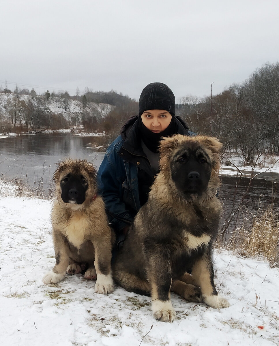 🐶 Ну, вот и наступил этот радостный день – у Сахиба закончился карантин и мы вышли на первую в его жизни прогулку за пределами своей территории. 🐶 Щенку 3, 5 месяца. Он показал себя смелым, уравновешенным и уверенным в себе. Практически всё он видел впервые, но ни проносящиеся мимо машины, ни бурная река, ни люди – ничего не вызвало у него паники. 🐶 До этого щенки прошли тест «Петарды и салюты». Мы специально вышли вместе с ними во двор в самый разгар канонады. Тест пройден успешно. Немного испугались, только когда взрываться начало прямо над головой. Но паники не было, просто спрятались под ёлку, но на зов вышли и больше не убегали. 🐶 Единственный минус, Который я обнаружила на прогулке – Сахиб проявляет чёткую активную агрессию в отношении лающих на нас собак. Когда мы идём по улицам, из-за заборов на нас постоянно лают собаки. Но Халифа, которой сейчас 5 месяцев, с самого начала никак на этих собак не реагировала – просто проявляла интерес. А Сахиб, на тех собак, которых