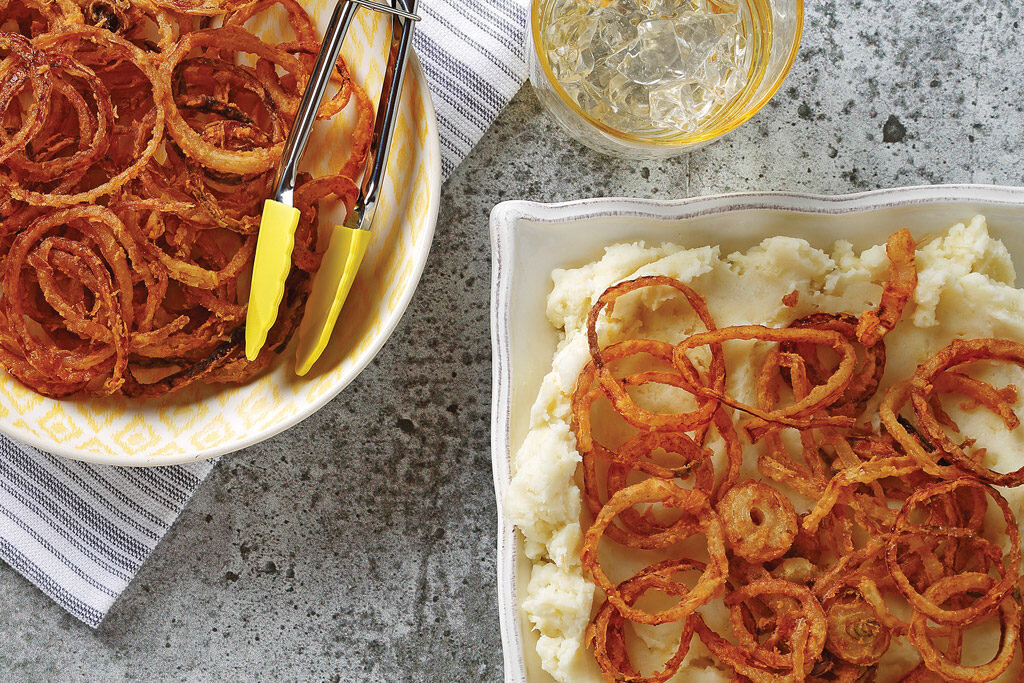 Как часто дома у нас остаются гарниры: картофельное пюре, вермишель, гречка, тот же рис или даже сваренные, но не съеденные пельмени? Думаю, что частенько. И просто подогревать всю эту красоту в СВЧ или на сковородке скучно и не вкусно. А затевать готовку чего-то основательного, чтобы доесть пару ложек каши - не хочется. Я часто пишу, что в таких ситуациях выручают мелочи, тот же лук по-французски. Только я частенько забываю рассказать, как эти мелочи готовятся)). Исправляюсь. 2 средних репчатых луковицы, нарезанных очень тонкими кружочками 1 стакан молока (250 мл) 1 стакан муки (250 мл) 1/4 ч. л. соли 4 стакана растительного масла (1 л) В неглубокую посуду выкладываем кольца лука (стараемся нарезать лук так, чтобы колечки были целыми) и заливаем молоком. Лук должен принимать молочные ванны примерно 5-10 минут. В кастрюлю с толстым дном, разогретую на среднем огне добавляем растительное масло. Если есть термометр, то засекаем температуру нагрева масла в 190 градусов, если нет, то