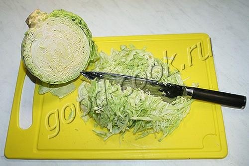 Капусту нарезать небольшими квадратиками. Грибы нарезать средними кусочками.
