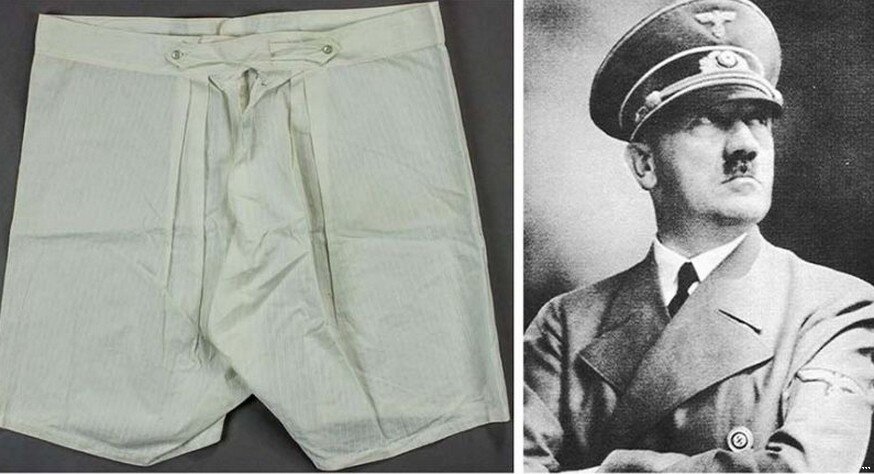 Есть много странных вещей, которые заканчиваются на аукционном блоке. Кусок свадебного торта принца Чарльза и леди Дианы Спенсер был продан с аукциона в 2015 году, через тридцать четыре года после свадьбы, за чуть более 1300 долларов. В 2015 году Sotheby's продал прядь волос с головы Вольфганга Амадея Моцарта за более чем 50 000 долларов. В 2010 году протезы Уинстона Черчилля были проданы за 23 тысячи долларов. Аукционисты считают, что это первая пара нижнего белья Гитлера, которая привлекла внимание публики. Предметы одежды и драгоценности, которые принадлежали жене Гитлера Еве Браун, включая пару кружевных фиолетовых трусиков, были проданы на аукционе Philip Serrell Auctions в ноябре 2016 года за $ 4000. Апреле 1938 года Адольф Гитлер пробыл несколько дней в Parkhotel Graz в Австрии. Очевидно, когда его багаж был упакован, кто-то забыл его трусы. Льняные шорты имеют талию в тридцать девять дюймов, несколько застежек на пуговицах и инициалы Гитлера, вышитые на ткани.