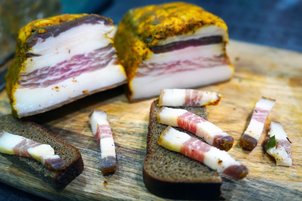 Очень простой и вкусный способ сухого посола точно понравится всем! Сало я всегда солю самостоятельно самыми разными способами: в луковой шелухе, в рассоле, в банке и т.д. Этот способ самый простой и быстрый и я хочу им поделиться. ***************************** РЕЦЕПТ: Сало (подчерёвок) - 3 кг. Соль - 6 ст.л. Куркума - 1 ч.л. Кориандр - 1 ч.л. Смесь перцев - 1 ч.л. Паприка - 1 ст.л. Паприка копченая - 1 ч.л. Чеснок - 1 головка Лавровый лист - 3 листка Соус соевый - 5 ст.л. Смесь трав (кавказские или прованские) - 1 ч.л. ***************************** ПРИГОТОВЛЕНИЕ: Нарезаем свежее сало на кусочки (примерно 10 на 20 см). Натираем сало солью и помещаем в емкость для засолки шкуркой вниз. Накрываем емкость пищевой пленкой и оставляем на 1 сутки при комнатной температуре. Далее емкость с салом убираем в холодильник на 1-2 дня. Обтираем сало бумажными полотенцами (убираем соль и влагу). Приготовим смесь для обмазки сала. Чеснок мелко нарезаем (можно натереть на крупной терке). Лавро