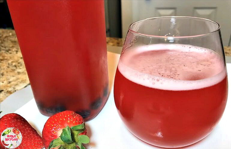 - Клубничный компот процедить желательно через марлю или сито. И попробуйте компот на сахар. Он должен быть вам по вкусу. Если у вас клубника сладкая то можно добавить ложку чайную лимонного сока.Следом напиток перелить в стеклянную бутылку. В каждую из бутылок добавить несколько изюмин.