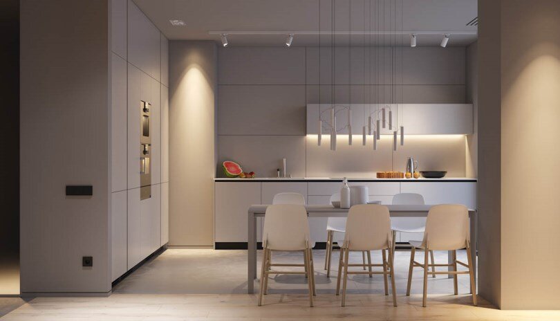 Важность правильного освещения в минимализме сложно переоценить. Источники света должны располагаться так, чтобы создавать доступное и безопасное жилище, в котором легко ориентироваться и перемещаться.