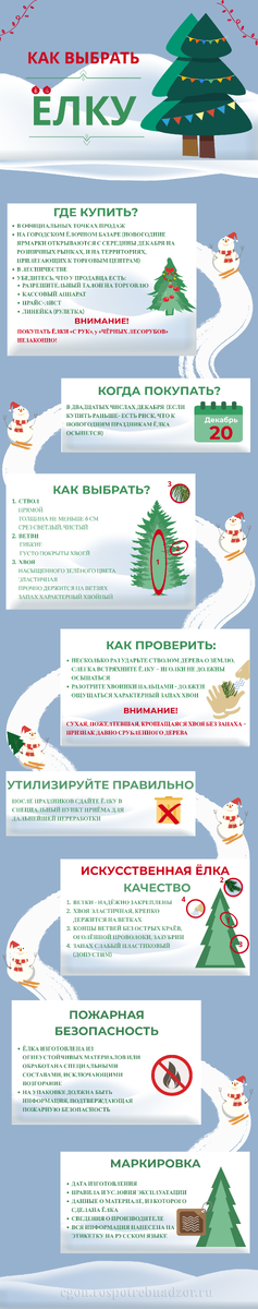 Убедитесь в наличии следующей информации: дата изготовления, правила и условия эксплуатации, указание на материал, из которого сделана ёлка, данные о производителе и предприятии, принимающем претензии. Вся информация должна быть представлена на русском языке.