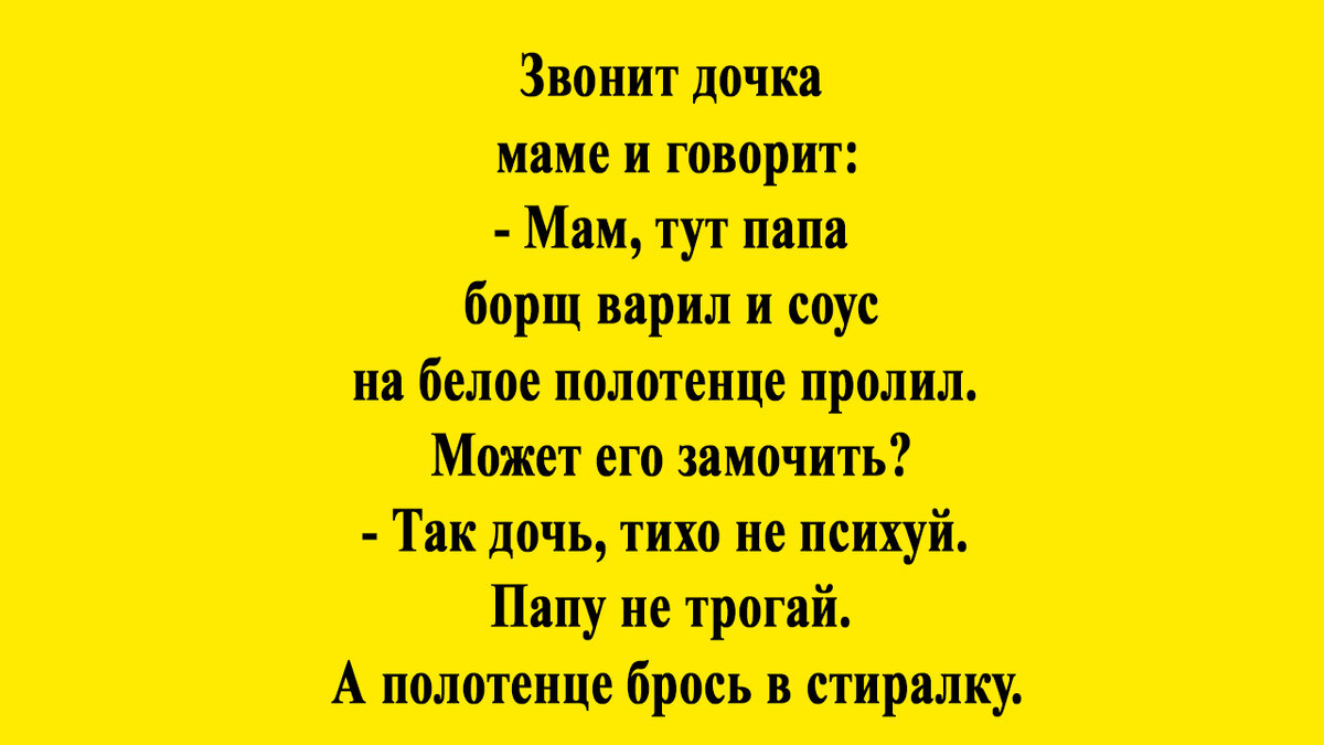 - Мам, тут папа борщ варил и соус на белое полотенце пролил. Может его замочить?