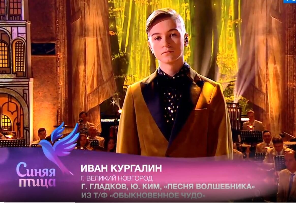 Накануне на канале «Россия», вышел в эфир 6-ой отборочный тур Всероссийского конкурса юных талантов «Синяя птица». В нём принял участие и новгородец – 13-летний Иван Кургалин. Иван играет на скрипке, занимается вокалом, ходит в танцевальную студию и во всём добивается успехов. Но самый необычный талант Ивана не связан со сценическим мастерством. Он собирает кубик Рубика за 13 секунд! В 6 лет Иван увлёкся игрой на скрипке, правда, быстро понял, что классическая музыка прекрасна, но зажигать интереснее на танцполе. И тогда он твёрдо решил стать певцом и записался в вокальную студию, - такую историю рассказал зрителям программы Сергей Майоров. Своё участие в конкурсе «Синяя птица» Иван посвятил самому дорогому человеку в жизни – своей бабушке. Сейчас ей 90 лет и именно она учит Ивана быть сильным и ценить то, что имеешь. В отборочном туре Иван исполнял «Песню волшебника» из телефильма «Обыкновенное чудо». Это песня-история, монолог волшебника и актерского мастерства здесь, пожалуй нуж