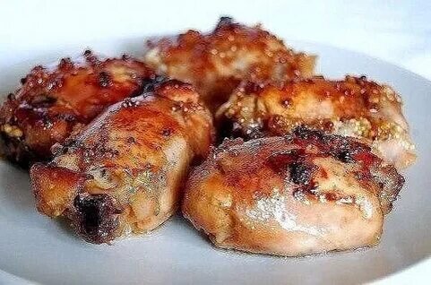 Продукты: Как приготовить: Куриные части промыть, затем промокнуть бумажным полотенцем, снять кожу при необходимости, уложить курицу в форму для запекания. В отдельной миске смешать жидкий мёд, соевый соус, растительное масло и два вида горчицы. Перемешать маринад и залить им куриное мясо. Сверху по желанию слегка поперчить и накрыть форму фольгой. Оставить блюдо на 1,5-2 часа при комнатной температуре, а затем убрать в разогретую духовку до 180 градусов на 30 минут. После этого снять фольгу и запекать курицу в маринаде ещё 30 минут, постоянно поливая кусочки курицы соусом. Готовое блюдо достать, переложить на тарелку и можно сразу подавать к столу в качестве закуски. Такая вкуснота из курицы хороша также хороша в холодном виде. Приятного Аппетита! Подписывайтесь на КАНАЛ и ставьте лайк!