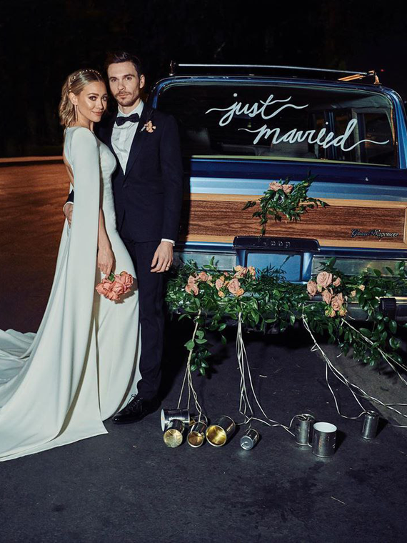 В минувшие выходные состоялась тайная свадьба Хилари Дафф и Мэттью Кома — влюбленные связали себя узами брака прямо на заднем дворе дома в Лос-Анджелесе. Церемония была скромной — на нее пригласили только близких друзей и родных пары. Уже сейчас Дафф решила поделиться радостными моментами с поклонниками — в личном Instagram-аккаунте звезда опубликовала снимок с мужем. На нем влюбленные позируют на фоне автомобиля с надписью «Молодожены». Кроме того, Хилари поделилась видеороликом, который был записан эксклюзивно для Vogue — актриса показала свадебное платье, которое специально для нее создала дизайнер Дженни Пэкхем в Лондоне. Издание сняло, как Дафф примеряла платье за несколько дней до церемонии. «Я чувствую себя очень комфортно в этом платье — это именно то, о чем я мечтала. Я очень хотела что-то современное» Платья Пэкхем выбирают не только голливудские звезды — в нарядах Дженни появляется даже Кейт Миддлтон. Хилари дополнила свой образ длинными серьгами и украшением для волос
