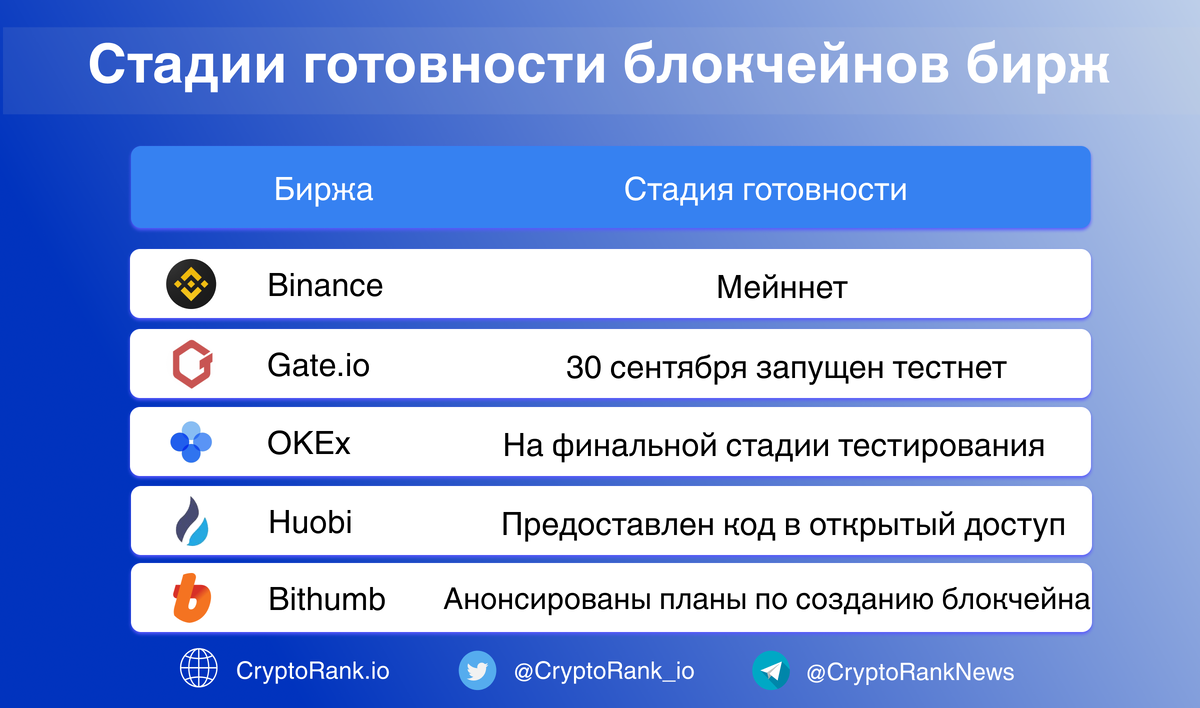 В 2019 году биржи готовились к запуску своих блокчейнов, но до сих пор только биржа Бинанс смогла запустить мейннет.