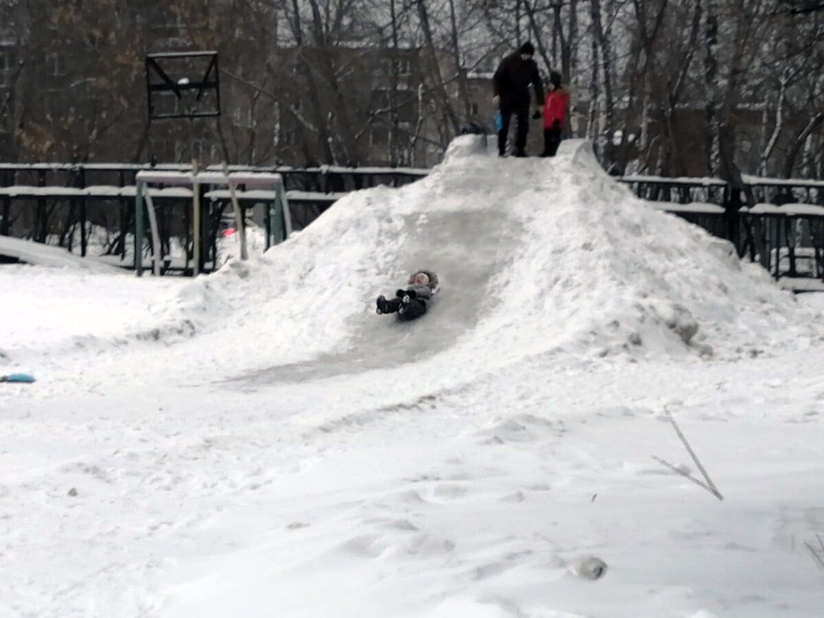 Во дворе дома по адресу Трикотажная, 37, на огороженной территории бывшей спортплощадки родители своими силами построили горку, но радоваться дети будут недолго. Бдительная администрация Дзержинского района вынесла постановление о захвате муниципальной собственности и сносе горки, так как она построена не по ГОСТу.