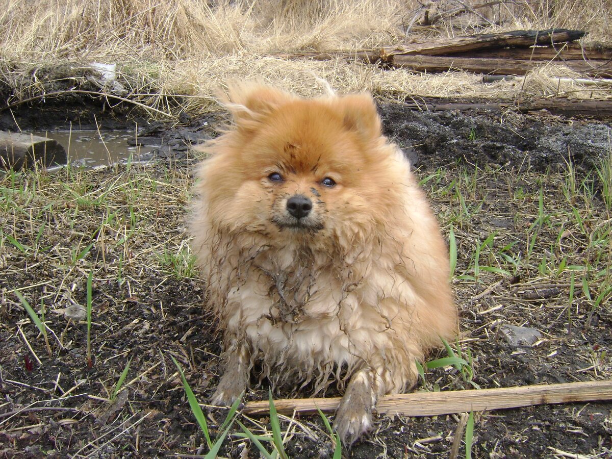 Грязная лужа - счастье для шпица или как шпицемаму чуть кандратий не хватил!!!