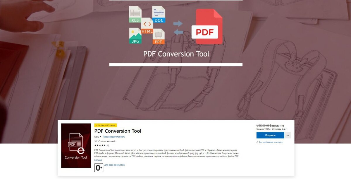 PDF Conversion Tool - позволяет вам легко и быстро конвертировать практически любой файл в формат PDF и обратно. Легко конвертирует PDF-файл в формат Microsoft Word (doc, docx) и практически в любой формат изображений (png, jpg, gif и т. д).