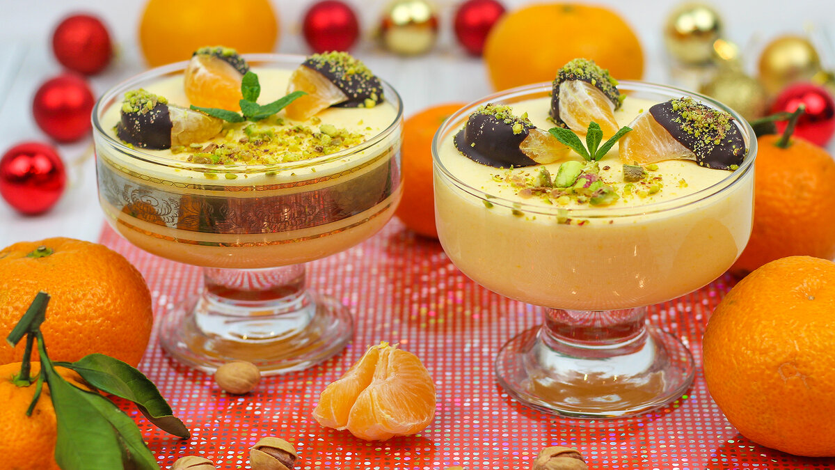 Легко, быстро и вкусно! Десерт очень вкусный, воздушный, нежный, с насыщенным мандариновым вкусом! Рецепт под видео! Будет хорошим украшением Новогоднего стола! А готовить всего 15 минут!