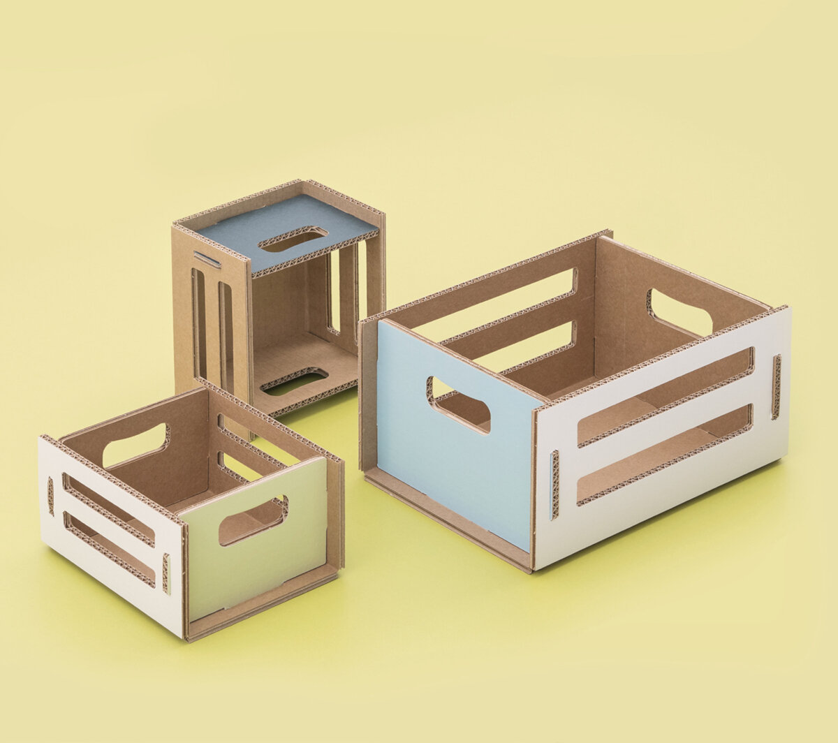 Оригинальные коробки из гофрокартона разработали специалисты из Corvasce Design. Они прекрасно смотрятся как на витрине магазина, так и в дизайнерских решениях под задачи заказчика. Изготовленные из переработанного пятислойного гофрокартона, они олицетворяют экологическую чистоту и прочность. Это особенно выгодно подчеркнуть, если ваши клиенты беспокоятся о чистоте окружающей среды, или вы планируете принимать участие в выставках на территории Европы или Америки, где «зеленая линия» пользуется повышенным интересом. Дизайн упаковки и конструкция Стилизованные под ящики-лотки, коробки без крышки легко собираются как конструктор из пяти заготовок: дно и четыре стенки. В торцевых стенках находятся удобные ручки для переноски, а в боковых стенках – отверстия, через которые хорошо виден товар. Коробка предлагается в пяти размерах: от XS (25 х 15 х 13 см) до XL (40 х 30 х 20 см). Производитель этих прочных лотков – бельгийская компания Corvasce Design (Брюссель) 35 лет совершенствует кач