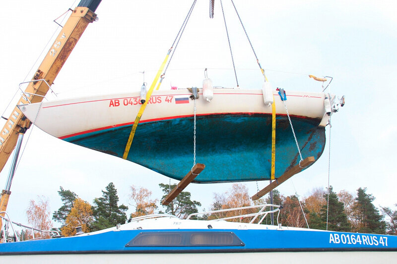В прошлом году мы были первыми в нашем яхтклубе, кто поставил яхту на такой кильблок. Данная конструкция очень популярна в северной Европе для длиннокилевых яхт, но у нас это пока в диковинку. А в этом году уже двое яхтсменов поставили свои яхты на такие же цепные кильблоки. Приятно, что наш опыт кому-то пригодился. Но все-таки мы хотели бы обратить внимание на пару важных моментов. Элементы этого нехитрого изделия должны быть адекватны нагрузкам, которые могут возникнуть в течение зимы. Во-первых не надо скупиться на покупку толстых цепей. На одном из кильблоков мы увидели, что цепи там стоят очень тонкие, и от перегрузок звенья разорвались по сварным швам и начали расходиться. Чисто умозрительно, лично я для себя выбирал цепь таким образом, чтобы ее разрушающая нагрузка равнялась полному весу лодки, а рабочая - не менее четверти. Здесь же цепочки были совсем уж тонюсенькие (5-6мм) - такая смотрелась бы нормально разве что в колодце на вороте, чтобы ей ведро поднимать. Но никак не кре
