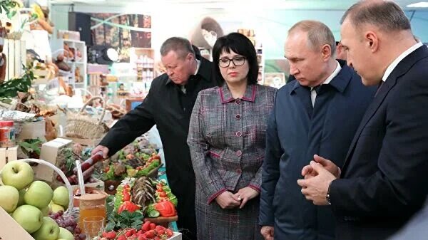 Путин пошутил над полпредом Устиновым, взявшим колбасу на агровыставке.