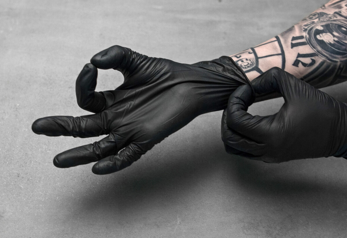 Одноразовые перчатки: Мастера работают только в одноразовых перчатках, которые заменяются при любом контакте с окружающими предметами. Лучше всего подходят нитриловые. Они не вызывают аллергию на руках и более устойчивы к механическим повреждениям. Перчатки — это средства индивидуальной защиты для максимальной стерильности в работе. Одноразовые высококачественные медицинские нитриловые эластичные перчатки Tattoo Mall подарят вам и вашему клиенту стерильность и безопасность в каждом шаге. Использование одноразовых материалов: Мастера используют абсолютно новые одноразовые материалы, которые по окончанию работы немедленно утилизируются, что исключает их повторное использование на других клиентах. В первую очередь это касается игл, как для татуировок, так и для перманентного макияжа, которые должны быть в неповрежденной упаковке-блистере. Мастер при клиенте извлекает иглу из упаковки, а по окончанию работы игла выбрасывается в контейнер для острых отходов. Дезинфекция подразумевает и обра
