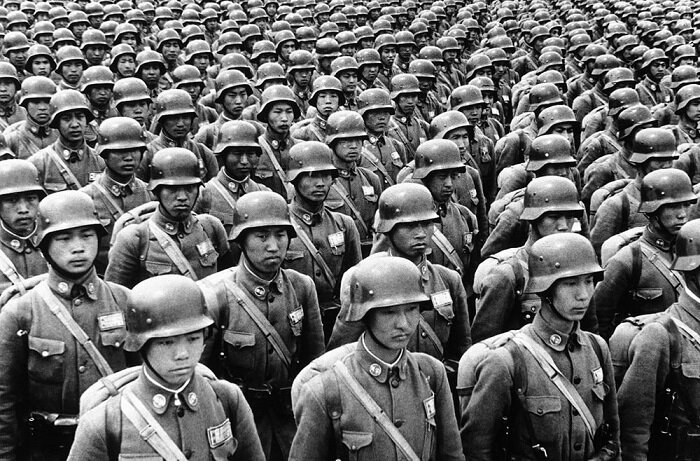 Японские пехотные дивизии были существенно слабее советских. В чем легко убедиться по американским справочникам Handbook on Japanese Military Forces за 1942-й и 1944-й годы. Хотя в японской дивизии было девять пехотных батальонов, противотанковых средств было значительно меньше (всего 12 37-47-мм противотанковых пушек), не было штатных средств ПВО, не было минометов калибром выше 50 мм.