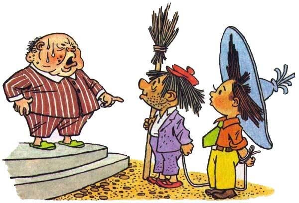 Просто зарисовки из нашей жизни совпадающие с детской сказкой. — Вот-с, господин Клопс, грабителя изловил, — сказал Фикс, останавливаясь с Незнайкой на почтительном расстоянии. Господин Клопс встал из-за стола, подошёл к ступенькам, которые вели вниз с веранды, и, сложив на животе свои пухлые ручки, стал оглядывать Незнайку с головы до ног. — Наверно, в капкан попался? — спросил наконец он. — Так точно, господин Клопс. Жрал малину и попался в капкан. — Так, так, — промычал Клопс. — Ну, я тебе покажу, ты у меня попляшешь! Так зачем ты малину жрал, говори? — И не жрал вовсе, а ел, — поправил его Незнайка. — Ох ты, какой обидчивый! — усмехнулся господин Клопс. — Уж и слова сказать нельзя! Ну хорошо! Так зачем ты её ел? — Ну, зачем… Захотел кушать. — Ах, бедненький! — с притворным сочувствием воскликнул Клопс. — Захотел кушать! Ну, я тебе покажу, ты у меня попляшешь! А она твоя, малина? Отвечай! — Почему не моя? — ответил Незнайка. — Я ведь ни у кого не отнял. Сам сорвал на кусте. От злост