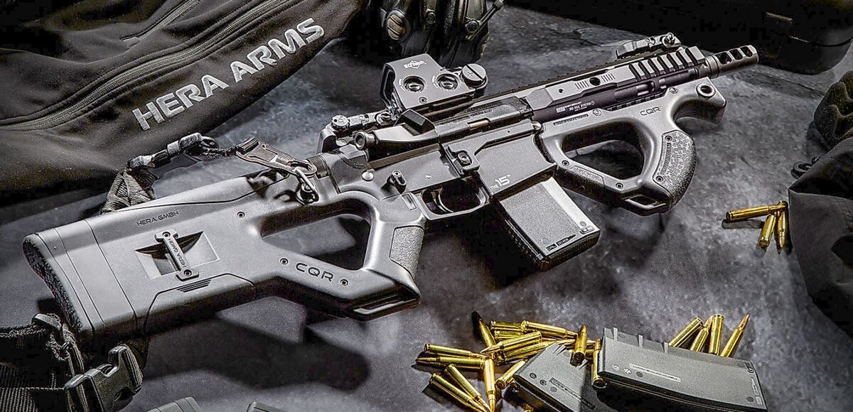 Представляемый комплект включает в себя приклад CQR, интегрированный с пистолетной рукояткой, и переднюю рукоятку CQR также необычной формы. Пожалуй, это единственный вариант обвеса винтовок и карабинов семейства AR-15/M4 такого исполнения. И все же нельзя сказать, что подобный дизайн ложи никогда не встречался – что-то очень похожее в начале 90-х годах предложила бельгийская фирма Fabrique Nationale Herstal в своем инновационном пистолет-пулемете FN P90 (Project 90) калибра 5,7x28 мм. Для стрельбы владелец оружия должен вложить обе руки в выемки приклада и цевья. Несмотря на свою необычность и футуристичность, такая «бубличная» ложа оказывается очень удобной, обеспечивает крепкий и надежный хват, а также – за счет скругленной конструкции и отсутствия выступающих частей – способствует быстрому переводу оружия в боевое положение, без риска зацепиться за элементы экипировки или иные предметы. Это важно для оружия данного класса, сконструированного для персональной самооборо