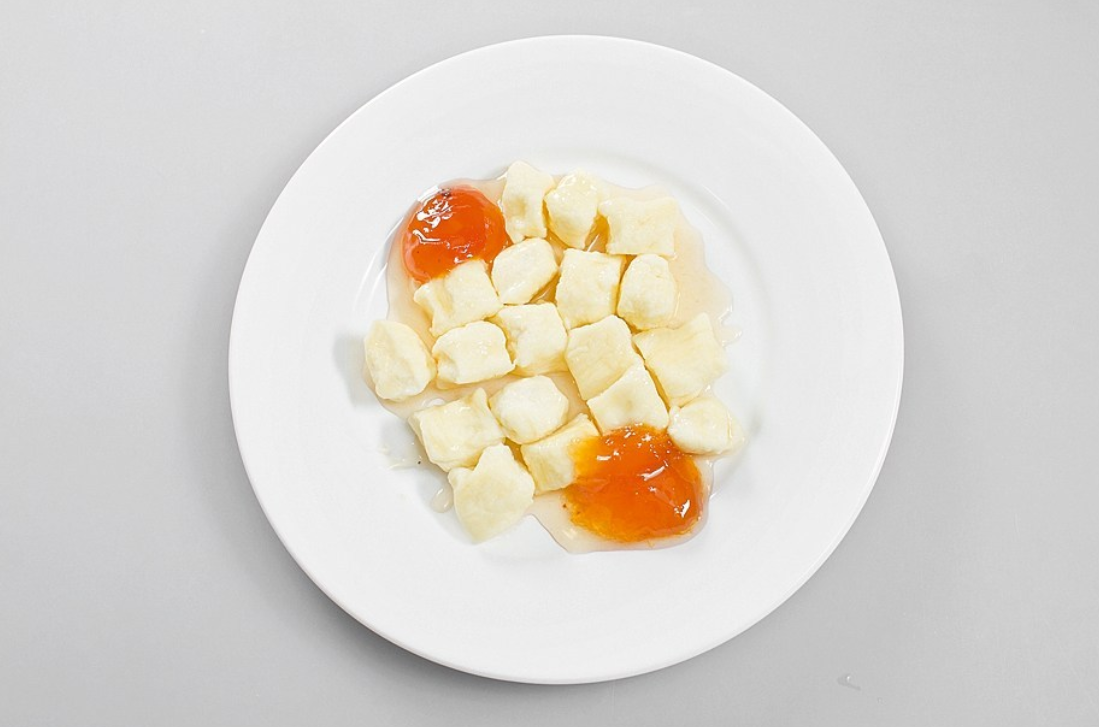 5. Готовые вареники выложить из кастрюли на тарелки и полить вареньем, например абрикосовым. Подавать их можно горячими или теплыми.