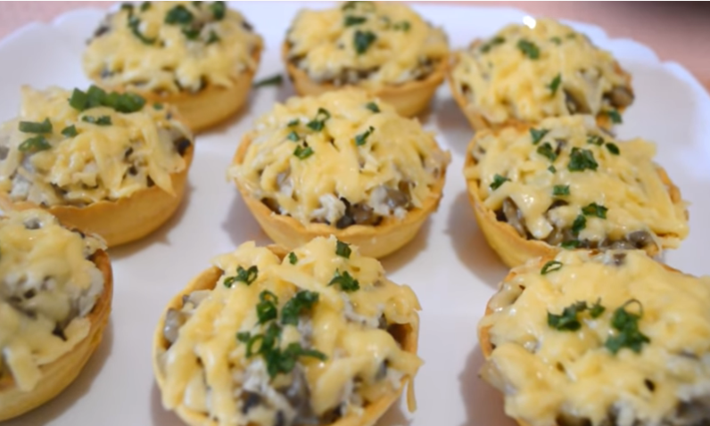 Тарталетки с грибами и курицей под сыром «Праздничные»