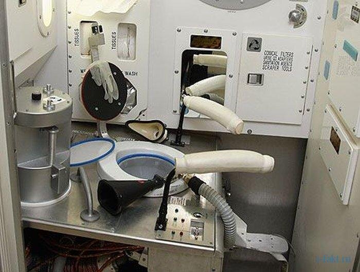 Все мы люди и понятно, что куда-то деваем отходы своей жизнедеятельности, а точнее ходим в туалет. Многие задаются вопросом: А как ходят в туалет в КОСМОСЕ? Любой знающий закон всемирного тяготения, который кстати там не действует, поймет, что дело это не простое. Унитаз на орбитальной станции предназначен как для мужчин, так и для женщин — выглядит точно так же, как на Земле, но имеет ряд конструктивных особенностей. Он снабжен фиксаторами для ног и держателями для бёдер, в него вмонтированы мощные воздушные насосы, которые помогают изымать все плохое, что выходит из космонавтов. Космонавт пристёгивается специальным пружинным креплением к сидению унитаза, затем включает мощный вентилятор и открывает всасывающее отверстие, куда воздушный поток уносит все отходы. После всасывания все отходы расщепляют на кислород и воду, эти составляющие жидких отходов человека запускают в замкнутый цикл ОС. На МКС воздух из туалетов перед попаданием в жилые помещения обязательно фильтруется для очистки