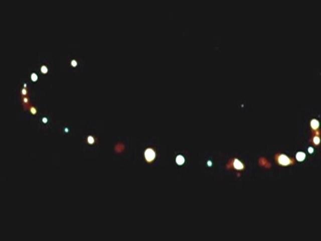 Фото сделали в Уотербери, штат Коннектикут, 1987 Пилот Рэнди Эттинг с 30-летним стажем работы прогуливался вечером неподалеку от своего дома, когда вдруг заметил на небе оранжевые и красные огни, приближавшиеся с запада. Рэнди немедленно позвал соседей и достал бинокль и фотоаппарат. К этому времени огни приблизились и пролетали над межштатной автомагистралью I-84. Моторы машин, находившихся в тот момент на I-84, заглохли. Эта встреча с НЛО была подтверждена многими свидетелями, включая соседей Эттинга и автомобилистов.