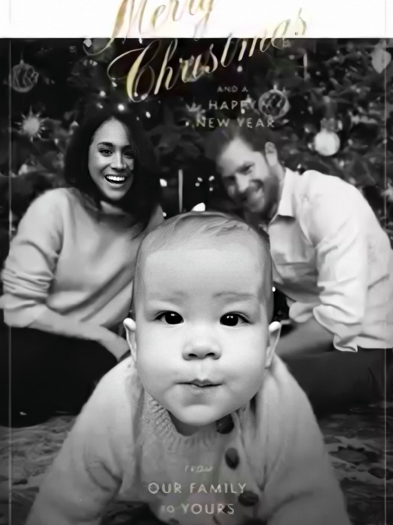 Меган и Гарри возглавляют благотворительный фонд — с его помощью они решили поздравить всех с грядущими праздниками. Черно-белый снимок запечатлел семью герцогов Сассекских под елкой и был украшен сверкающими элементами.