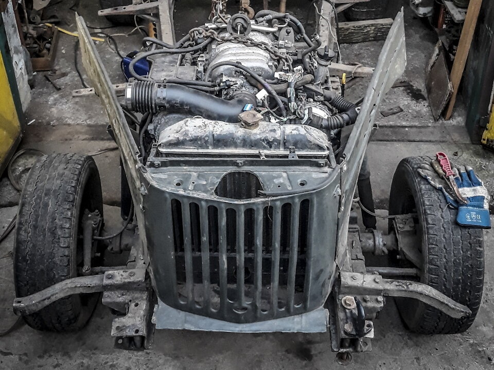 Прежде чем рассказывать эту историю довольно долго сомневался. Просто идея с разбором заднеприводного Lexus LS 430 сама по себе довольно странная. Еще более нелепой она становится, когда узнаешь, что из агрегатов японского премиального авто будут собирать ГАЗ 69. Конечно рамная конструкция ГАЗ 69 очень удобна для тюнинга, поскольку позволяет установить практически любой мотор, трансмиссию, подвеску... а потом просто надеть сверху кузов. Возможно придется переделать тоннель КПП и моторный щит, но это никого не пугает. Для начала с Лексуса открутили заднюю подвеску с редуктором, двигатель V8 вместе с автоматической коробкой, тормоза и даже рулевую рейку. Интеграция задней подвески, пожалуй самое удачное решение. Как нельзя лучше подходит внедорожнику ;-0)) С передней подвеской тоже не стали заморачиваться, выкинули родной мост и прикрутили туда переднюю балку от Волги. Видимо авторы самоделки (drive2.ru/r/gaz/69/1221897/ ) решили не пробовать устанавливать переднюю подвеску Лексуса на Г
