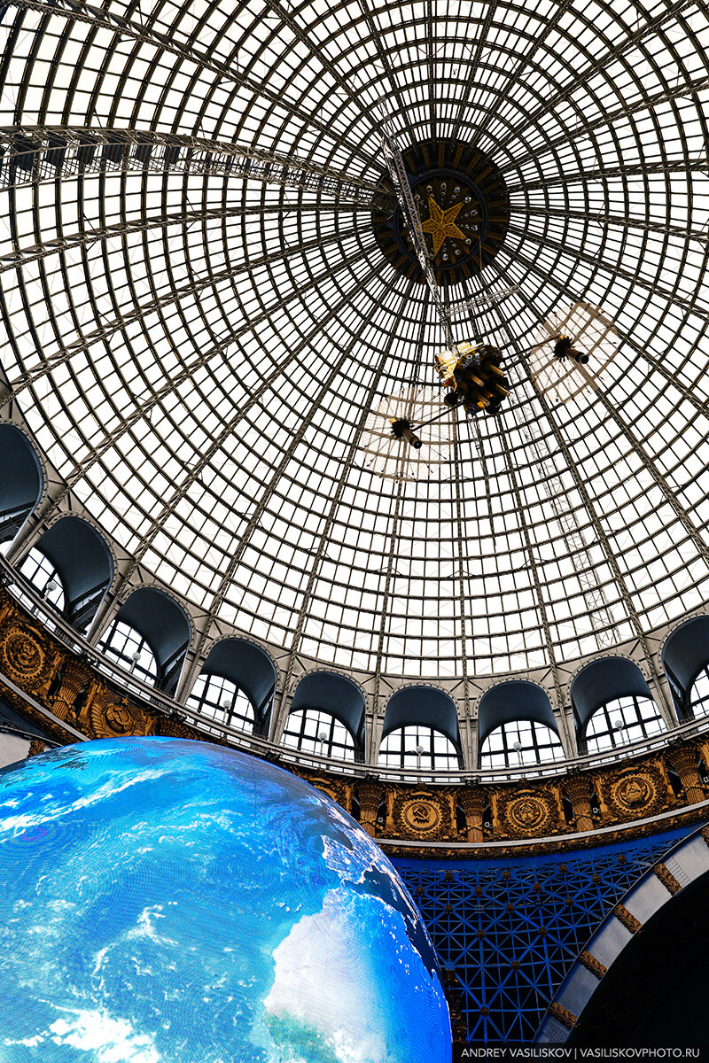 На прошлой неделе ездил в Москву и одной из целей поездки было посещение недавно открытого павильона "Космос" на ВДНХ. Как только его фотографии начали появляться в моей ленте Инстаграма, то сразу отметил это место как заслужиающее особого внимания. А посмотреть там действительно есть что! Особенно впечатляет огромный купол с висящим спутником на фоне модели Земли. В общем, как только я очутился в Москве то практически сразу собрался на ВДНХ. Дошёл до павильона "Космос", по пути разглядывая местные экспозиции из самолётов и ракет... Вход в павильон обычно стоит 500 рублей для взрослых и 250 рублей для детей. И вот, прихожу я в павильон, готовлю денежки, чтобы оплатить за двоих человек, а мне на кассе говорят: "А у нас сегодня бесплатно! Вот вам билет!". Хм, здорово! Кажется, я только что отбил наш обед :) Почему так получилось? Оказывается, если вы приходите, в павильон со вторника по пятницу с 11.00 до 15.00, то вход будет свободным - это приурочено к юбилею российской космонавтики. К