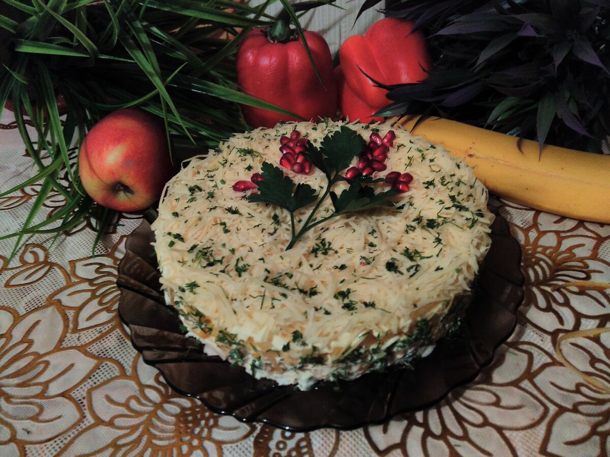 В студенческие годы, мне посчастливилось быть свидетельницей на свадьбе моей подруги, в городе Саратове. Среди множества салатов, которые готовились к приходу гостей, мне понравился салат "Очарование", так мне назвали его гости застолья. Очень вкусный, нежный и аппетитный. Меня он поразил вкусом ананаса в сочетании с другими ингредиентами. Без рецепта, я конечно уйти не смогла, который стал одним из моих любимых салатов. Готовлю его всегда на Новогодний стол, это уже вошло у нас в традицию. Всем нравится и все довольны, а кто пробует его в первый раз, без рецепта не уходят. И поэтому, сегодня хочу поделиться рецептом с Вами. Куриную грудку мою , отвариваю , нарезаю кубиком, отправляю в форму. Мясо подсолила по вкусу и каждый слой промазываю майонезом. Консервированную кукурузу отцеживаю от сока и укладываю в форму для салата. Консервированный ананас отцеживаем от жидкости и нарезаем кубиком . Можно нарезать и свежий ананас. Натираю сыр на мелкой тёрке и посыпаю верхним слоем. Украш