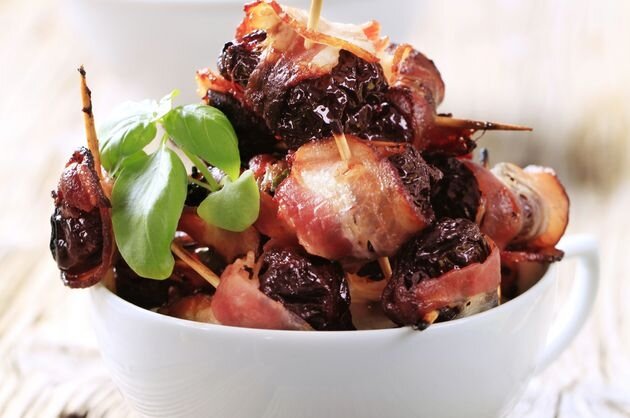 Ингредиенты: бекон полосками – 250 г, чернослив без косточек – 150 г.
