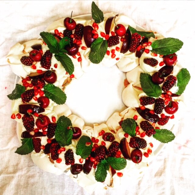 Этот потрясающий десерт по мотивам всемирно известной «Павловой» задуман специально для рождественских праздников. Здесь главное – оформить десерт в виде венка, сочетая красные и зеленые элементы. А вот то, какие ягоды вы будете использовать, сколько их будет приготовленных, а сколько свежих – на ваш выбор. Полезные советы Первый совет: вам нужно дать полностью остыть вашему венку в духовке (в идеале 5-6 часов), поэтому вам нужно планировать заранее - без этого невозможно добиться этого восхитительного мягкого центра и хрустящего верха безе. Второй совет: никогда, никогда не открывайте дверь, когда безе выпекается. И даже когда готово, подождите, пока дверца духовки не остынет, прежде чем открывать ее. Этот трюк сам по себе предотвращает разрушение и растрескивание вашего безе. Третий, самый важный совет: всегда, всегда используйте для взбивания яйца комнатной температуры. Четвертый совет: собирайте венок непосредственно перед подачей, не стоит его долго хранить в собранном виде. По