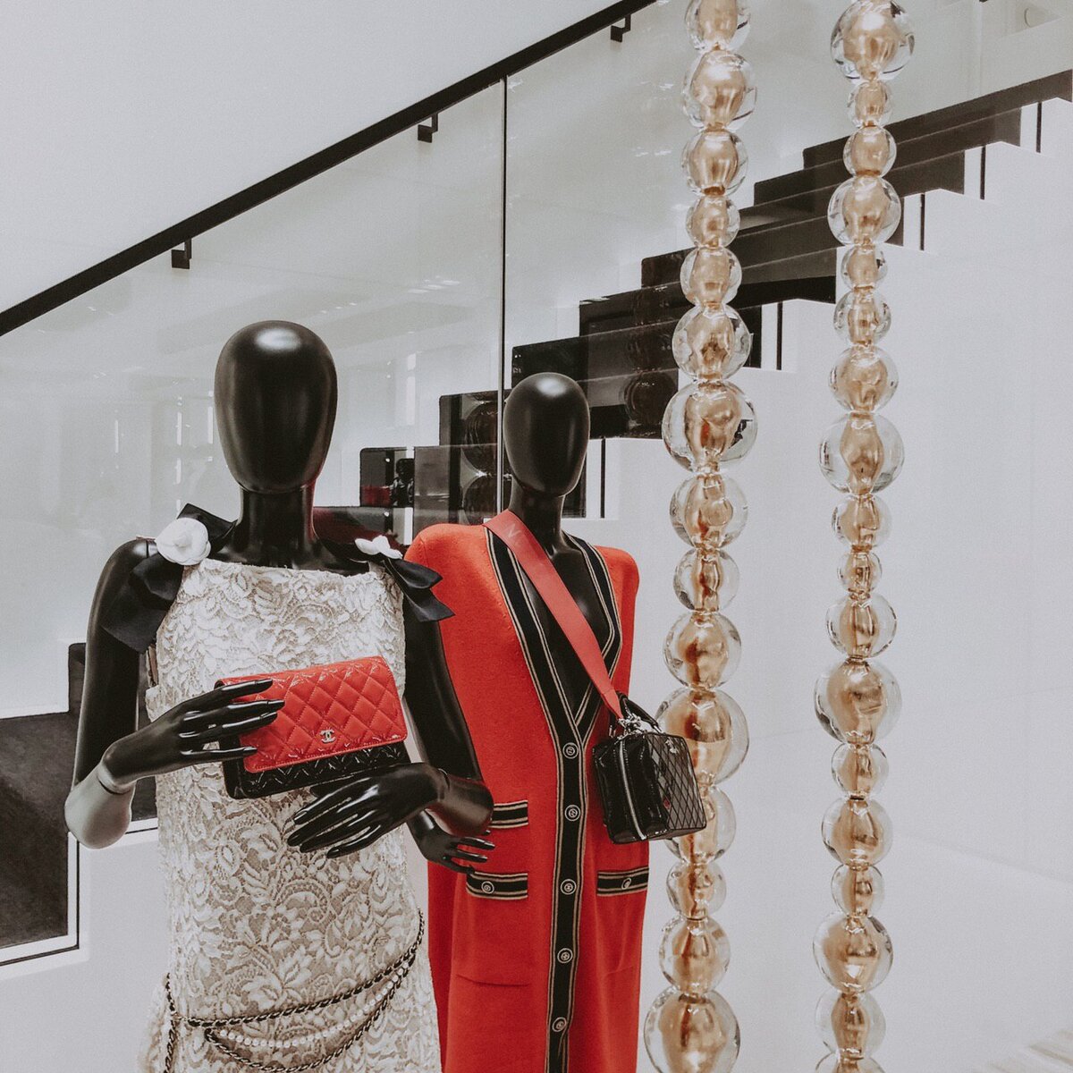 На первой линии ГУМа открылось огромное пространство Chanel, и главное в нём не духи и даже не одежда. Каждая деталь интерьера отсылает к наследию Мадемуазель, от люстры Goossens из горного хрусталя и винтажного зеркала на входе до гигантской подвесной скульптуры Жан-Мишеля Отониэля, которая соединяет первый этаж со вторым ниткой жемчуга. Таких «пасхалок» в бутике больше, чем ароматов в линейке Les Exclusifs (которые, впрочем, также представлены, но нестандартным образом — вместо отдельного стенда они вписаны в интерьер; это не мешает клиенту попросить попробовать любой из них и при желании приобрести). Пожалуй, не буду раскрывать все секреты; добавлю только, что если вы окажетесь в VIP-примерочной на втором этаже, обратите внимание на кофейный столик 😉. Что касается ассортимента, на площади 630 кв. м. вы найдёте сумки, ремни, перчатки, платки, очки и прочие аксессуары, а также ювелирные изделия и haute horlogerie. На втором этаже представлены одежда и обувь prêt-à-porter. Отдельный с