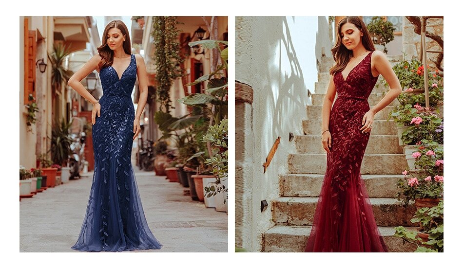 №1. Вечернее платье с V-образным вырезом, силуэт рыбка.