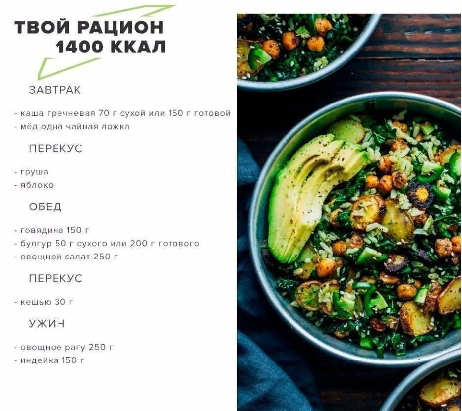 Низкокалорийный рацион на неделю.