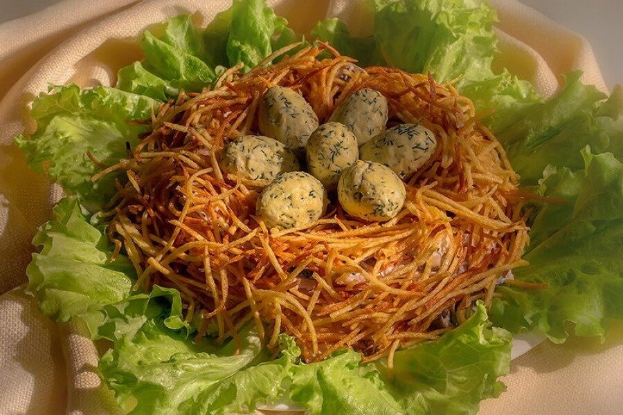 Рецепт салата “Гнездо глухаря”. Этот салат отлично украсит Ваш Новогодний стол