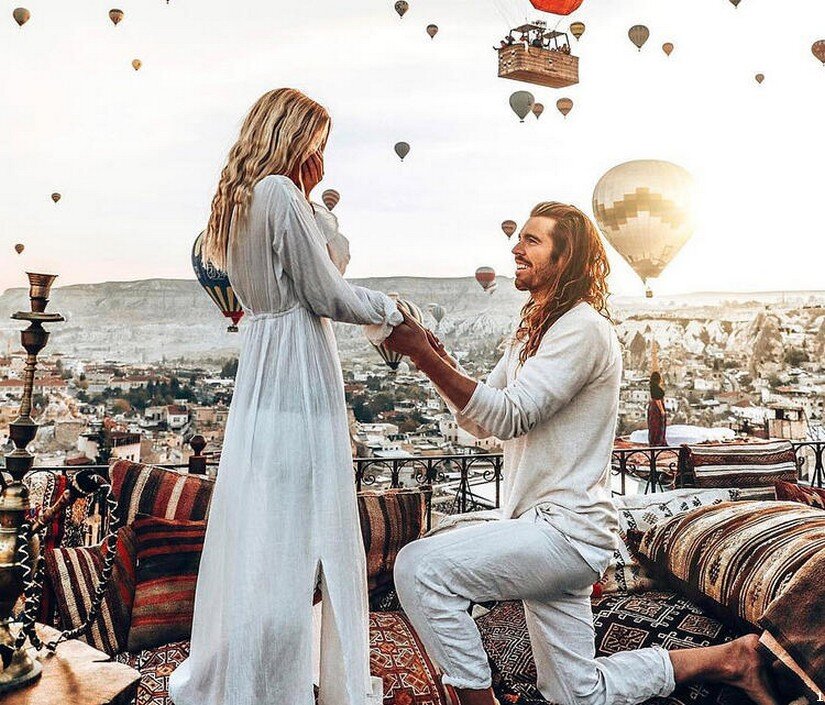Давайте посмотрим как выворачиваются наизнанку турки, чтобы удивить своих девушек. Забудем о бесконечных "хотелках" турчанок и их списков золота, которое женихи должны подготовить к свадьбе. Окунемся в атмосферу романтики и приключений на бескрайних турецких просторах. Как сделать предложение интересно, непредсказуемо красиво и романтично одновременно? Давайте подсмотрим как это делают турки. Как насчет того, чтобы сделать предложение любимой на рассвете, да еще на воздушном шаре в сказочной Каппадокии? Кстати, это место пользуется огромной популярностью не только у турок, но и у японцев, китайцев и корейцев! Люди со всего мира едут в этот волшебный уголок на Земле для того, чтобы признаться в своих чувствах, окунуться в атмосферу любви и счастья. Ну кто из поклонниц "Великолепного века" смог бы отказаться от сюрприза в виде любимой султанши Хюррем? Вот и наша соотечественница не смогла отказать своему любимому турку, который сделал предложение "по-нормальному". Встреча с Мерьем Узер