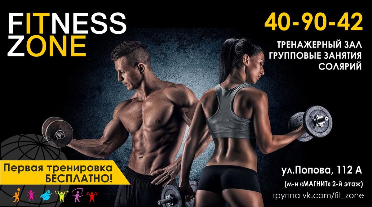 Чтоб усталости ни зная быть всегда на высоте, приходите в Fitness Zone приобщайтесь к красоте!
